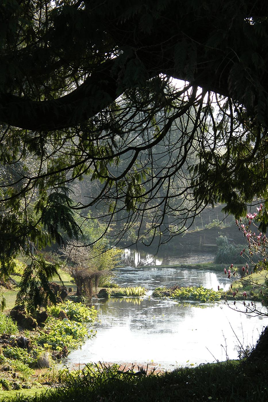 The flora at Tregothnan has been cherished for seven centuries. From the 1840s it became a global hotspot for botanical innovations,  “the most introduced plants anywhere in the world now flourish in Cornwall” according to horticulturalist Philip McMillan Browse. The equable climate is moderated by the vast Atlantic Ocean as the ocean air rises above the ten-mile ridge of Cornwall. The humid air loses its damaging saltiness begore reaching the plantations.  Tregothnan itself is six miles upstream on the banks of the deep-sea creek that is the river Fal – truly a micro-climate that has supported many extraordinary species of fruit trees and an enormous range of rare plants for centuries. Tregothnan river gardens perfectly mimics the atmosphere of the  high foothills of the Himalayas. The main expansion of the collection in recent years has been in the River Gardens, where visitors are invited to tour the expansive orchards, tea and jungle gardens. The linear riverside gardens are unique in having such a large waterside backdrop, almost every garden view looks out onto the vast river running through Tregothnan and its tidal tributaries.