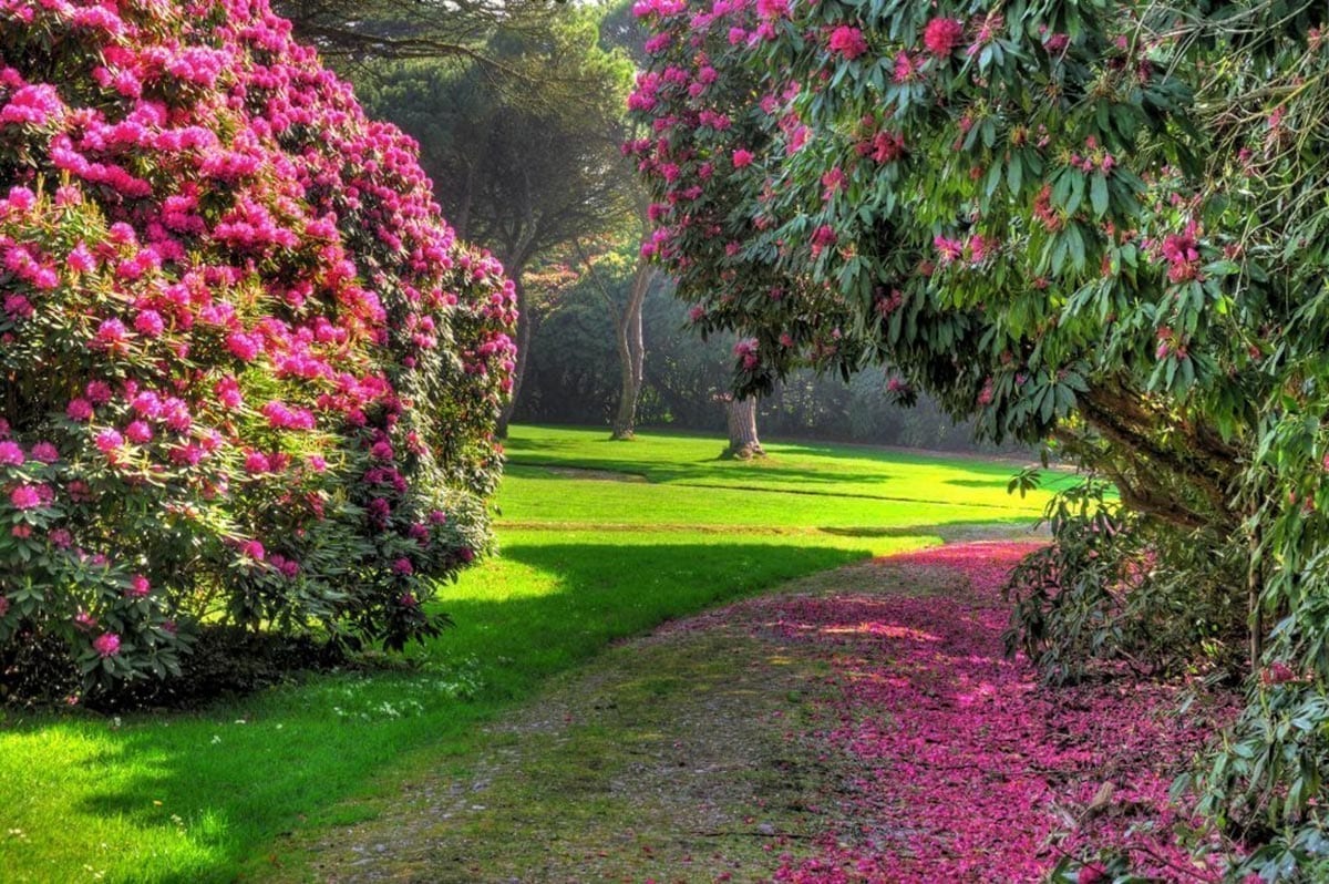 The world’s largest Camellia Maze grows at Tregothnan. Camellia is not an obvious choice, but as Tregothnan is the home of Camellia in the UK, that had to be the material used for the Tregothnan maze. In March the maze blooms in pink bud, creating overwhelming beauty for this candy coloured labyrinth.