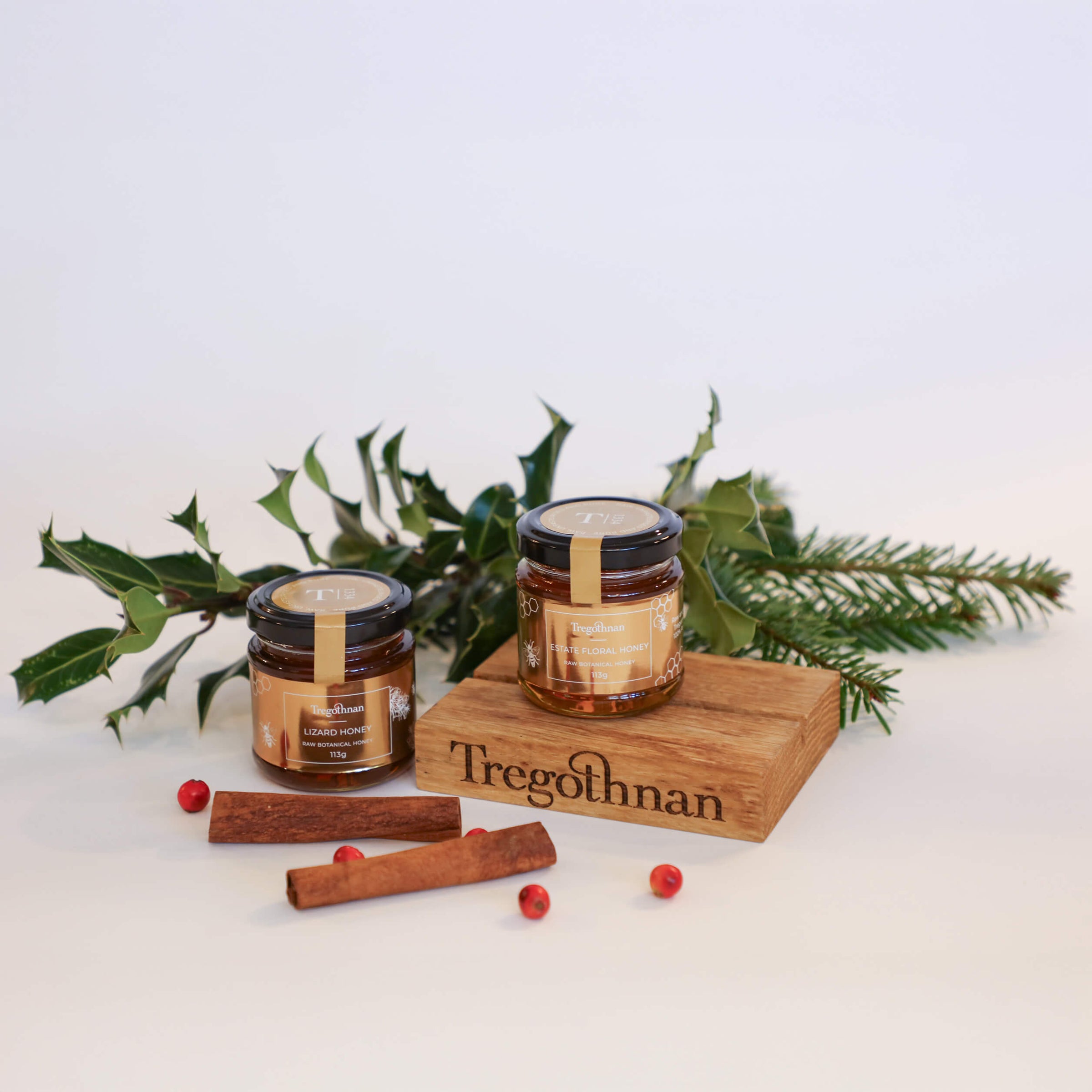 Nestled within this beautifully crafted package are two distinct 113g jars of Tregothnan's finest honey varieties, each a testament to the region's unique terroir and the meticulous craftsmanship of Tregothnan's beekeepers.