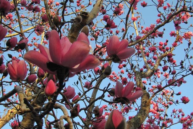 Here at Tregothnan our Cornish Tea Bushes luxuriate in conditions that are often warmer than Darjeeling in India and free from salt winds and other hazards that afflict coastal regions. The flora around the tea includes the famous pink Magnolia campbellii that itself was introduced from Darjeeling and often heralds spring in Cornwall before it arrives in Darjeeling!